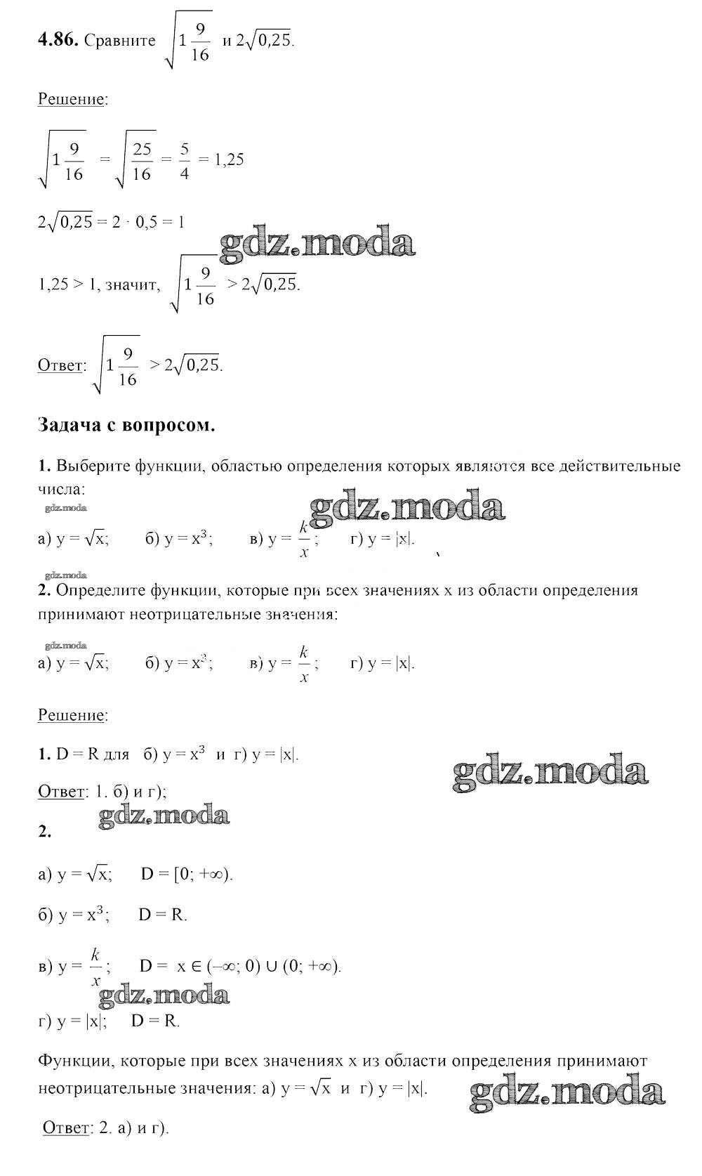 ОТВЕТ на задание № 4.86 Учебник по Алгебре 8 класс Арефьева