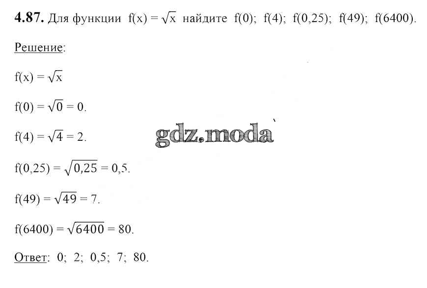 ОТВЕТ на задание № 4.87 Учебник по Алгебре 8 класс Арефьева