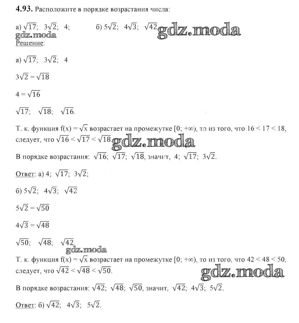 ОТВЕТ на задание № 4.93 Учебник по Алгебре 8 класс Арефьева