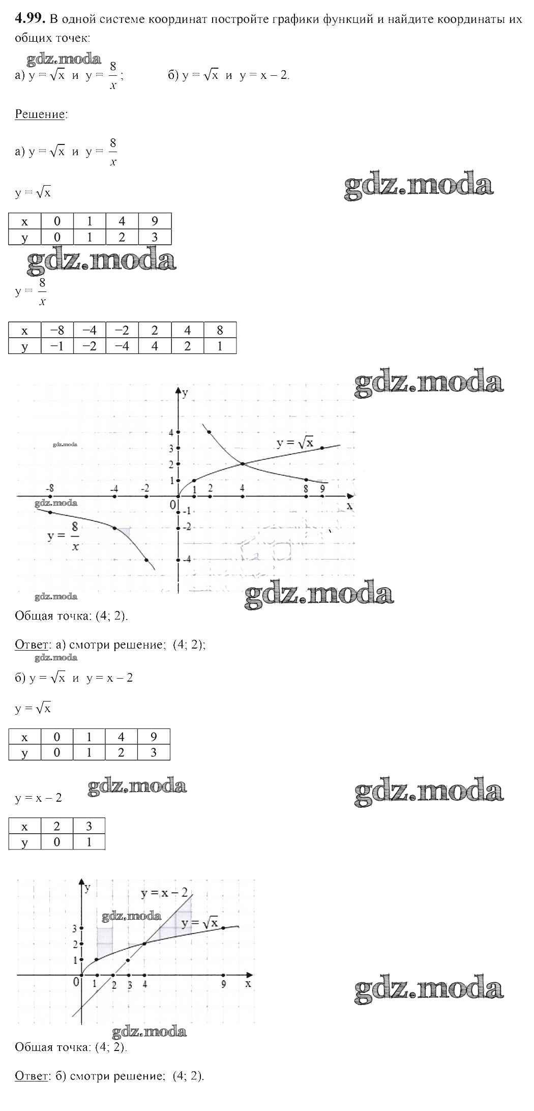 ОТВЕТ на задание № 4.99 Учебник по Алгебре 8 класс Арефьева
