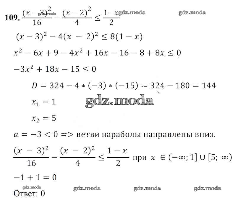 ОТВЕТ на задание № 109 Учебник по Алгебре 8 класс Арефьева