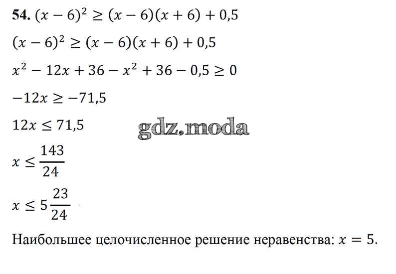 ОТВЕТ на задание № 54 Учебник по Алгебре 8 класс Арефьева