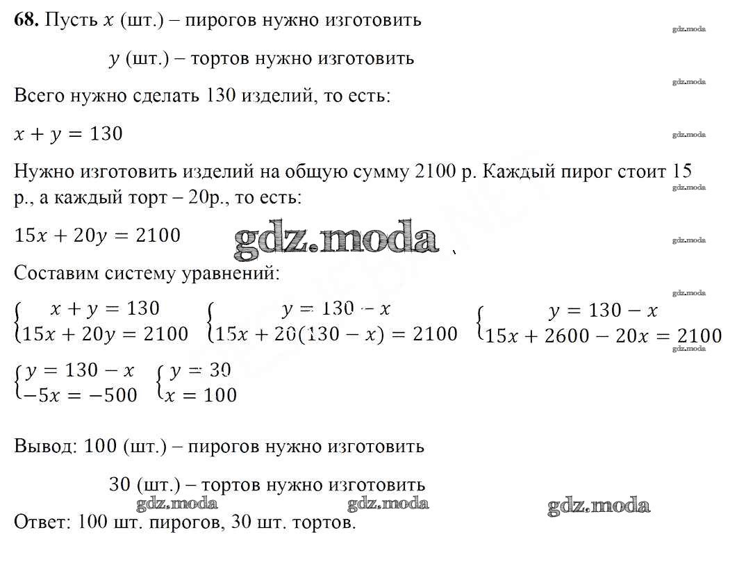 ОТВЕТ на задание № 68 Учебник по Алгебре 8 класс Арефьева