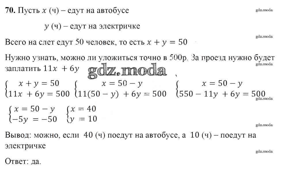 ОТВЕТ на задание № 70 Учебник по Алгебре 8 класс Арефьева