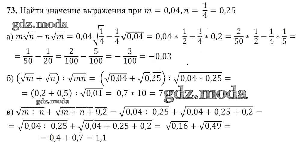 ГДЗ решение к заданию № 73 Алгебра 8 класс Арефьева И.Г. Народная асвета 2018 ФГОС бесплатно на гдз.мода!