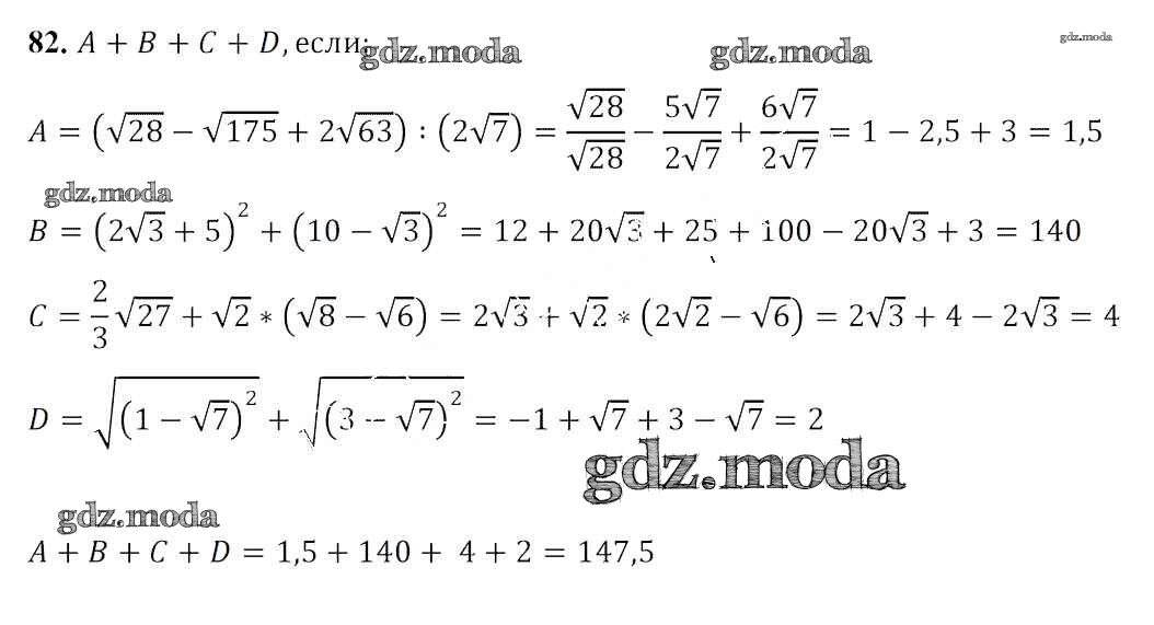 ОТВЕТ на задание № 82 Учебник по Алгебре 8 класс Арефьева
