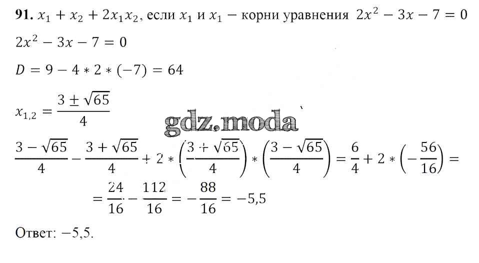ОТВЕТ на задание № 91 Учебник по Алгебре 8 класс Арефьева