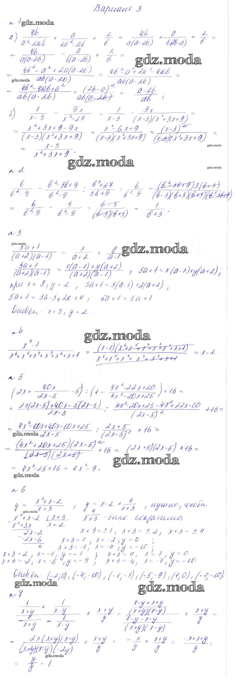 ГДЗ решение к заданию № вариант 3 Алгебра 8 класс Дидактические материалы Феоктистов Мнемозина 2013 ФГОС бесплатно на гдз.мода!