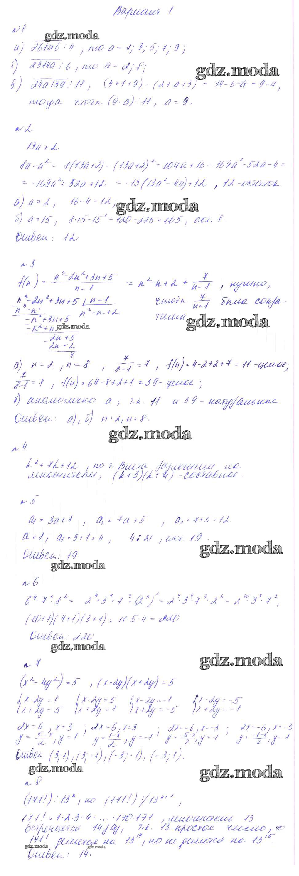 ГДЗ решение к заданию № вариант 1 Алгебра 8 класс Дидактические материалы Феоктистов Мнемозина 2013 ФГОС бесплатно на гдз.мода!