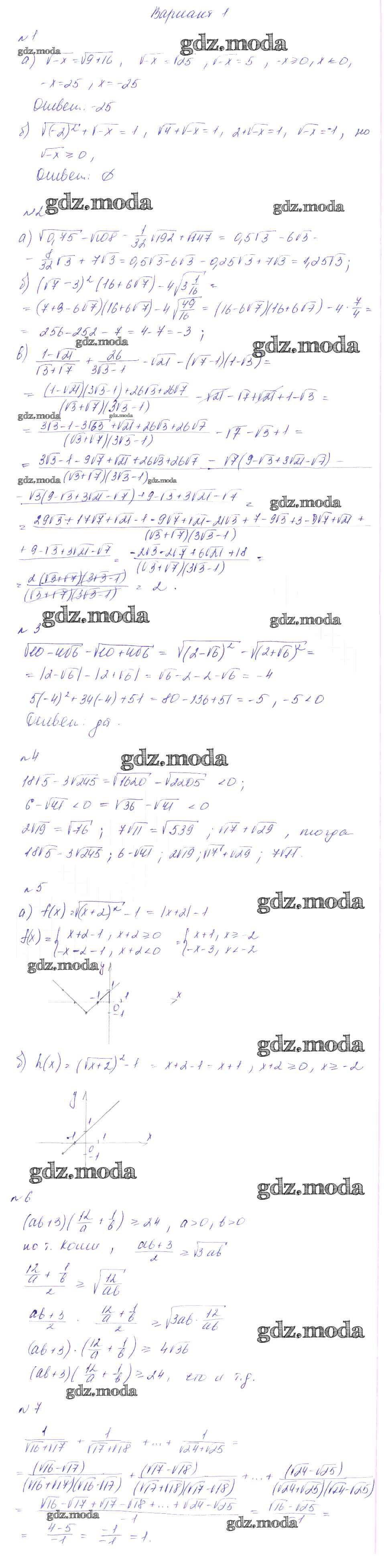 ГДЗ решение к заданию № вариант 1 Алгебра 8 класс Дидактические материалы Феоктистов Мнемозина 2013 ФГОС бесплатно на гдз.мода!