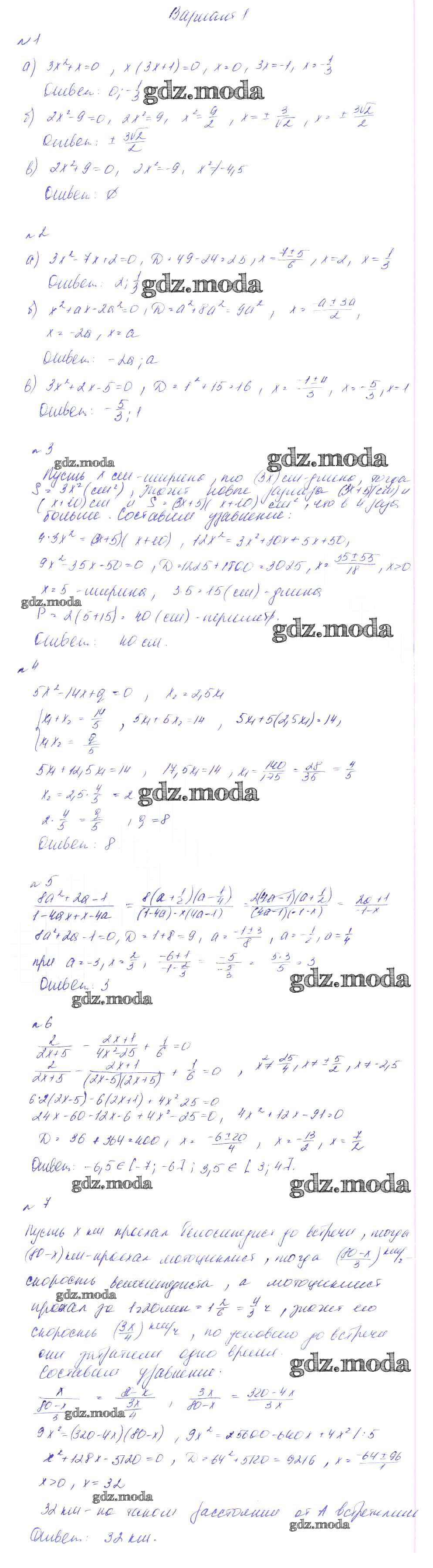 ГДЗ решение к заданию № вариант 1 Алгебра 8 класс Дидактические материалы Феоктистов Мнемозина 2013 ФГОС бесплатно на гдз.мода!