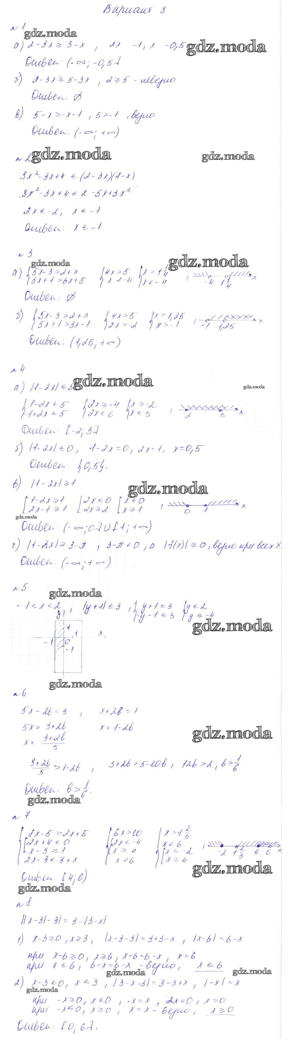 ГДЗ решение к заданию № вариант 3 Алгебра 8 класс Дидактические материалы Феоктистов Мнемозина 2013 ФГОС бесплатно на гдз.мода!