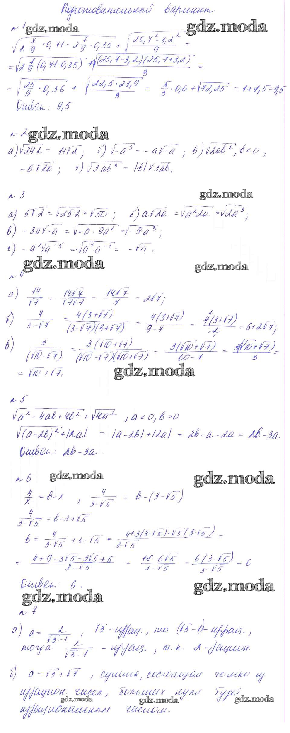 ГДЗ решение к заданию № подготовительный вариант Алгебра 8 класс Дидактические материалы Феоктистов Мнемозина 2013 ФГОС бесплатно на гдз.мода!