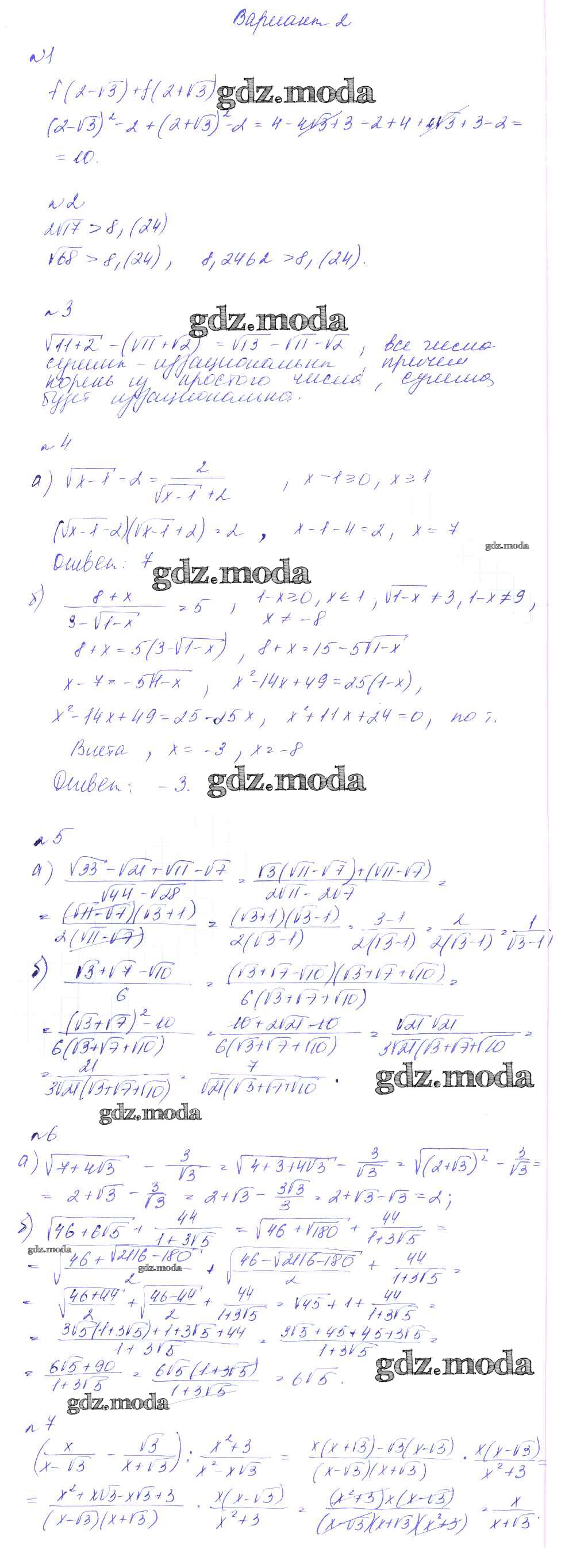 ГДЗ решение к заданию № вариант 2 Алгебра 8 класс Дидактические материалы Феоктистов Мнемозина 2013 ФГОС бесплатно на гдз.мода!