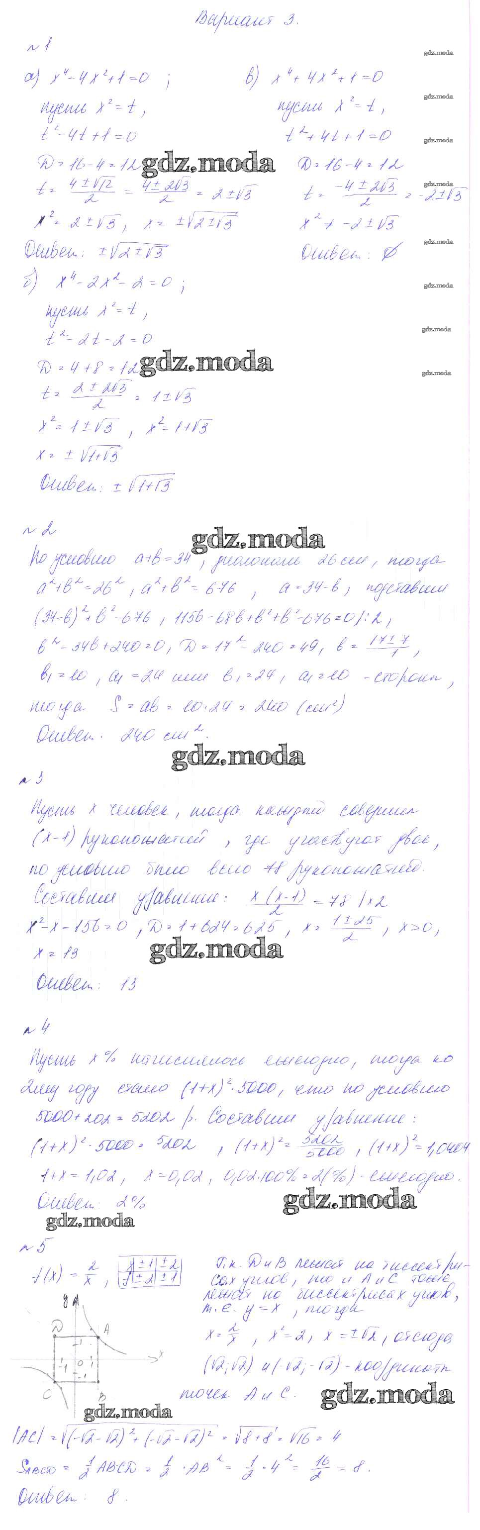 ГДЗ решение к заданию № вариант 3 Алгебра 8 класс Дидактические материалы Феоктистов Мнемозина 2013 ФГОС бесплатно на гдз.мода!