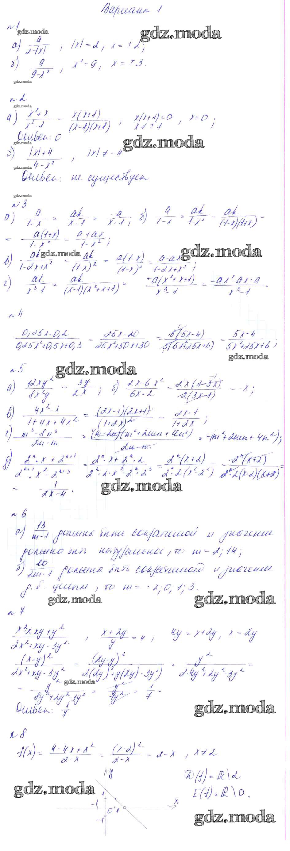 ГДЗ решение к заданию № вариант 1 Алгебра 8 класс Дидактические материалы Феоктистов Мнемозина 2013 ФГОС бесплатно на гдз.мода!