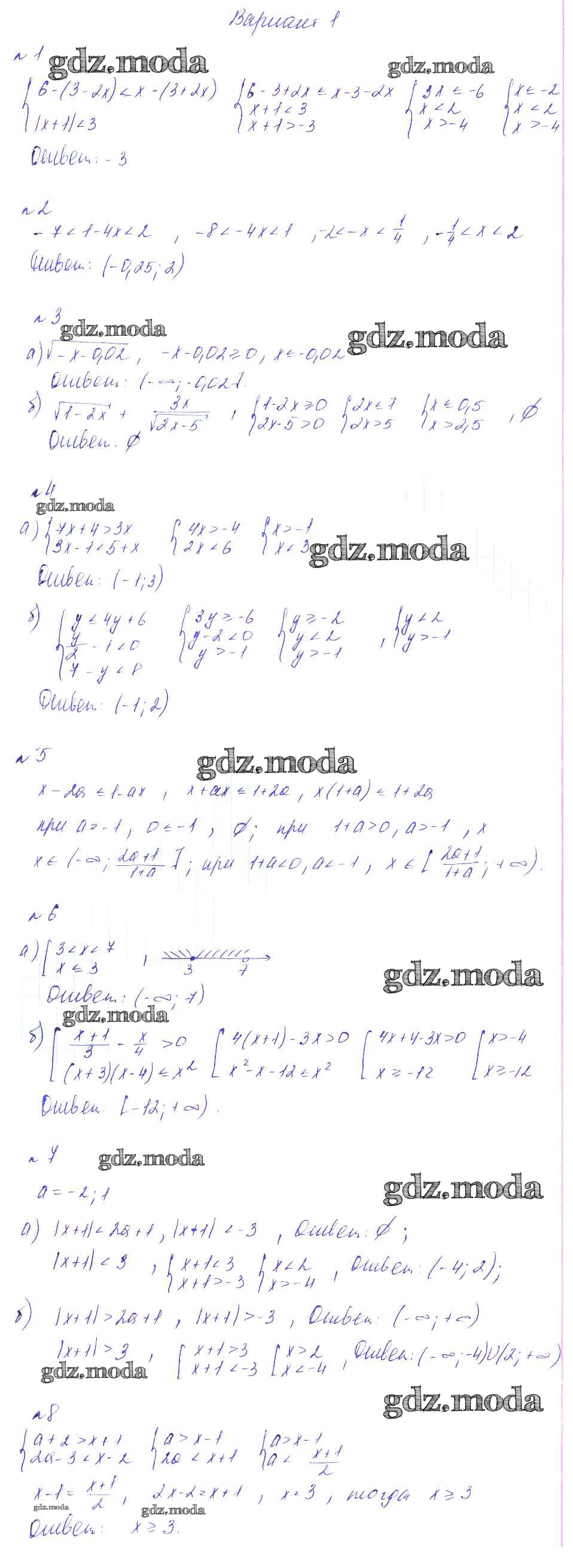 ГДЗ решение к заданию № вариант 1 Алгебра 8 класс Дидактические материалы Феоктистов Мнемозина 2013 ФГОС бесплатно на гдз.мода!