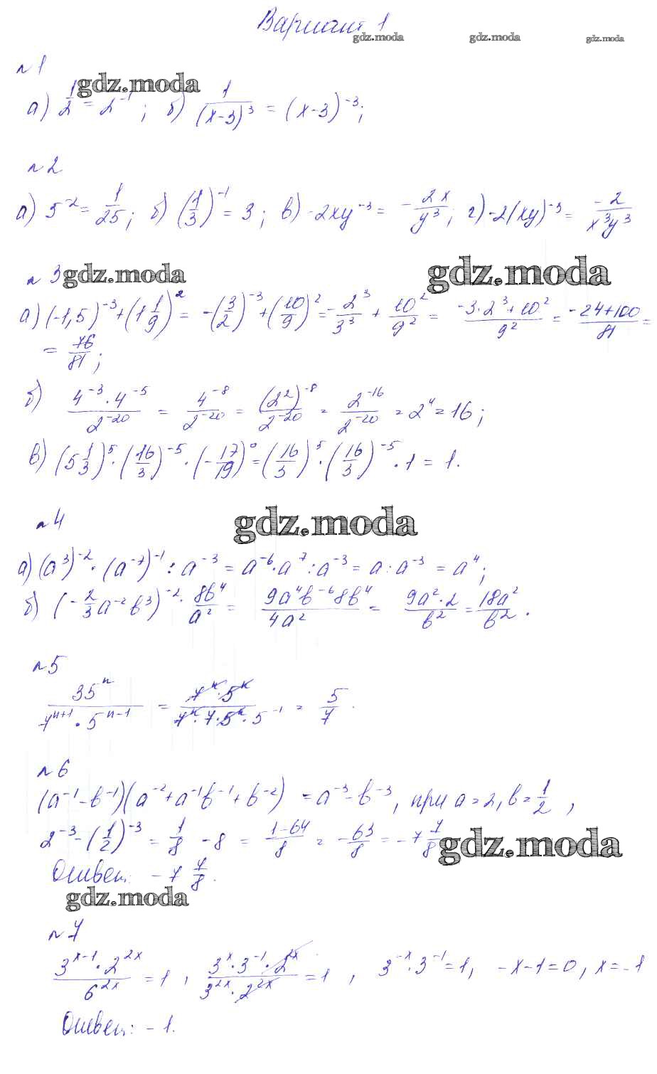 ГДЗ решение к заданию № вариант 1 Алгебра 8 класс Дидактические материалы Феоктистов Мнемозина 2013 ФГОС бесплатно на гдз.мода!