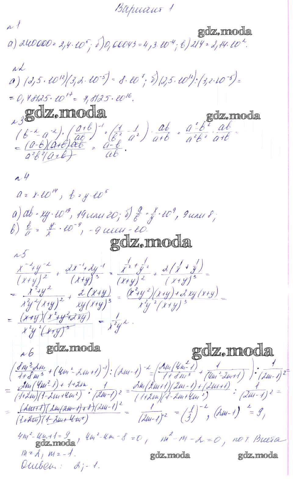 ГДЗ решение к заданию № вариант 1 Алгебра 8 класс Дидактические материалы Феоктистов Мнемозина 2013 ФГОС бесплатно на гдз.мода!