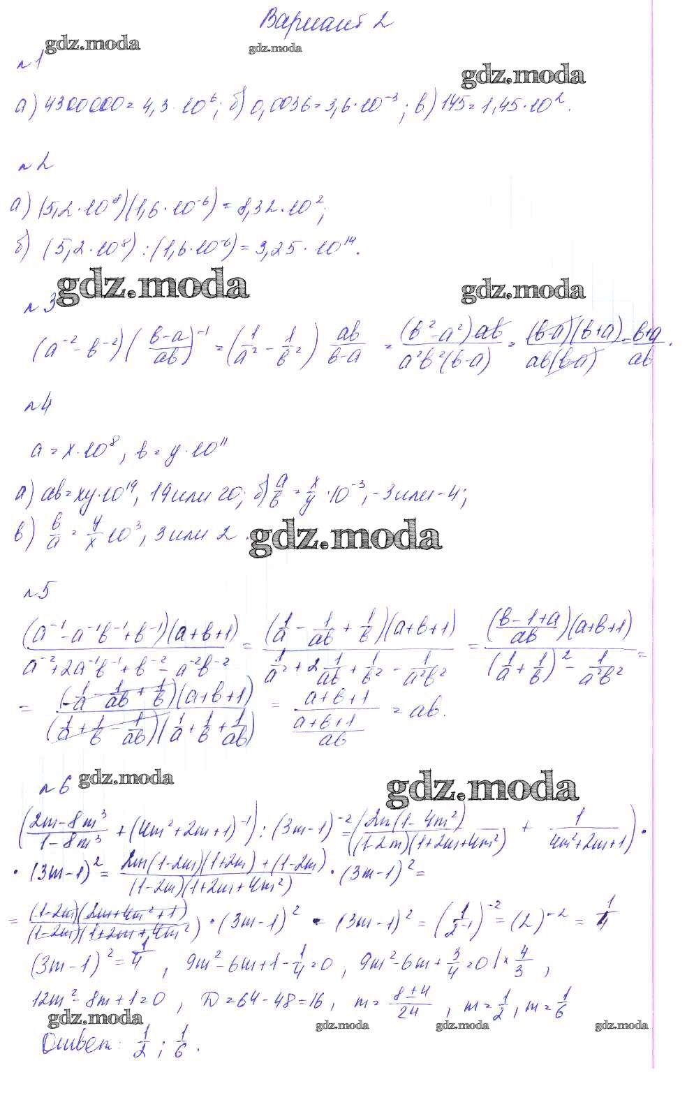 ГДЗ решение к заданию № вариант 2 Алгебра 8 класс Дидактические материалы Феоктистов Мнемозина 2013 ФГОС бесплатно на гдз.мода!