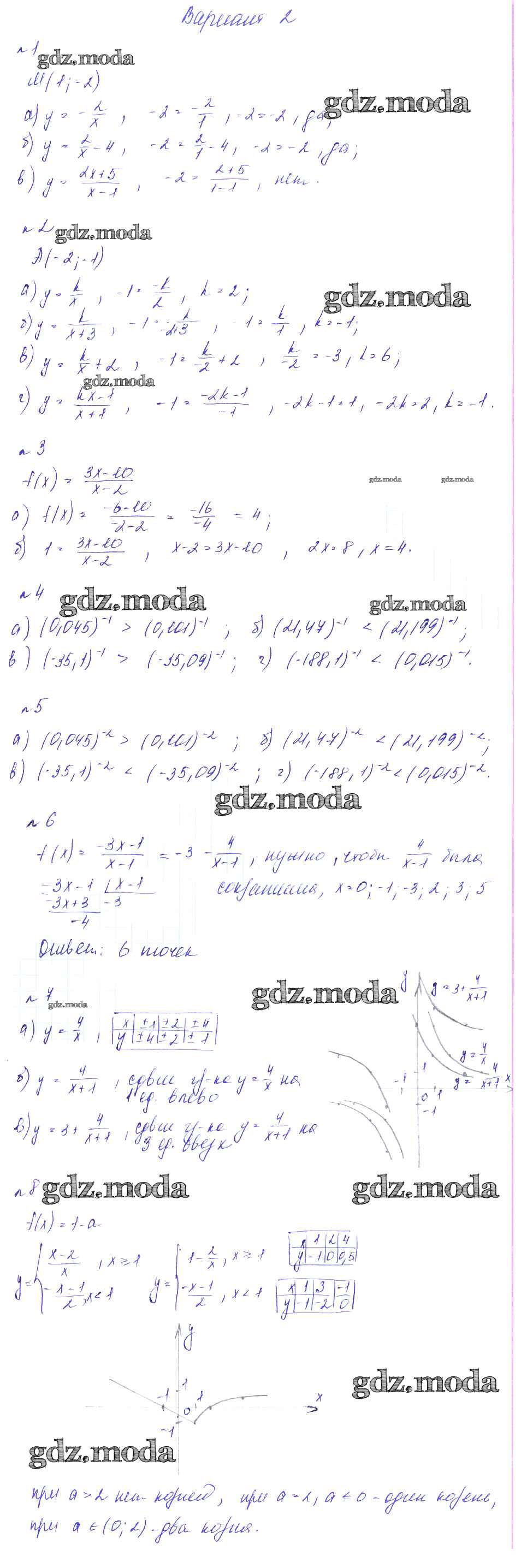 ГДЗ решение к заданию № вариант 2 Алгебра 8 класс Дидактические материалы Феоктистов Мнемозина 2013 ФГОС бесплатно на гдз.мода!