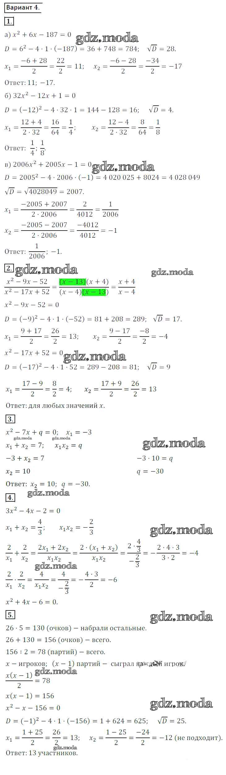 ГДЗ решение к заданию № вариант 4 Алгебра 8 класс Дидактические материалы Потапов М.К. Просвещение 2017 ФГОС бесплатно на гдз.мода!