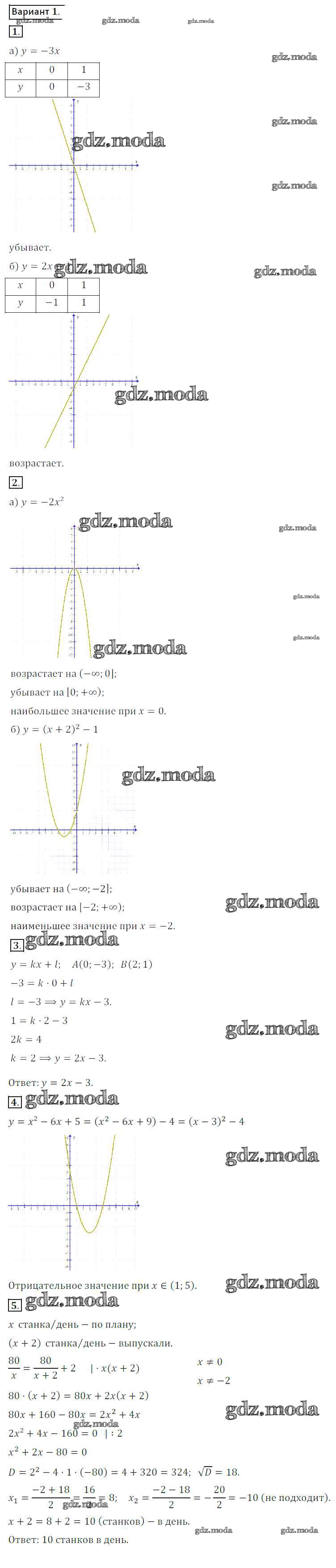 ГДЗ решение к заданию № вариант 1 Алгебра 8 класс Дидактические материалы Потапов М.К. Просвещение 2017 ФГОС бесплатно на гдз.мода!