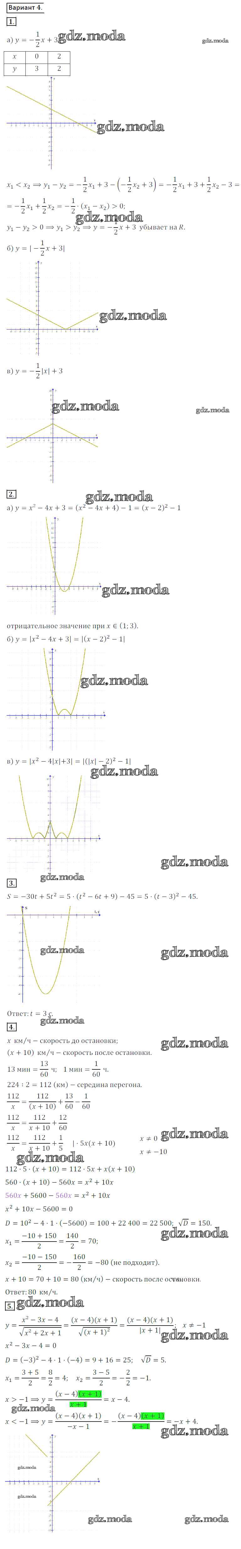 ГДЗ решение к заданию № вариант 4 Алгебра 8 класс Дидактические материалы Потапов М.К. Просвещение 2017 ФГОС бесплатно на гдз.мода!