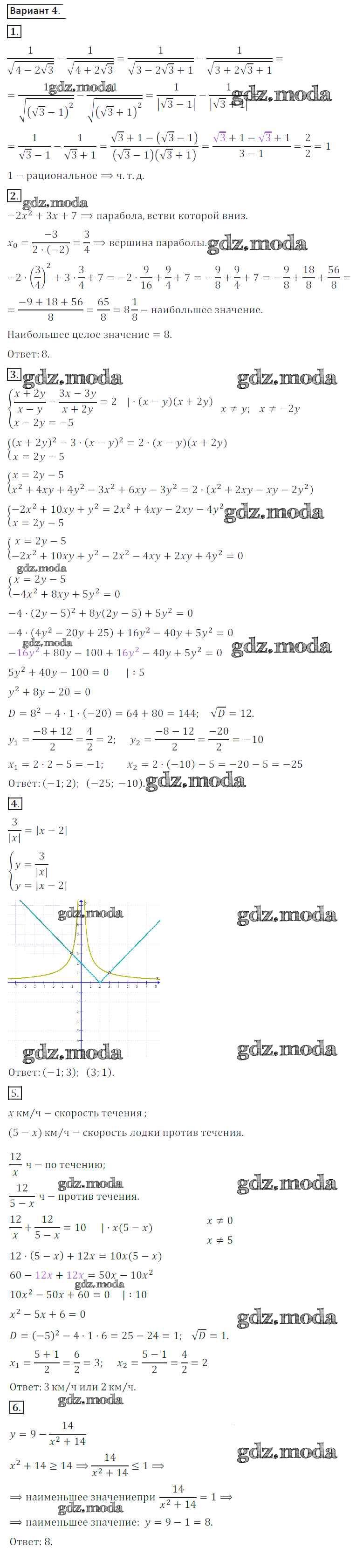 ГДЗ решение к заданию № вариант 4 Алгебра 8 класс Дидактические материалы Потапов М.К. Просвещение 2017 ФГОС бесплатно на гдз.мода!