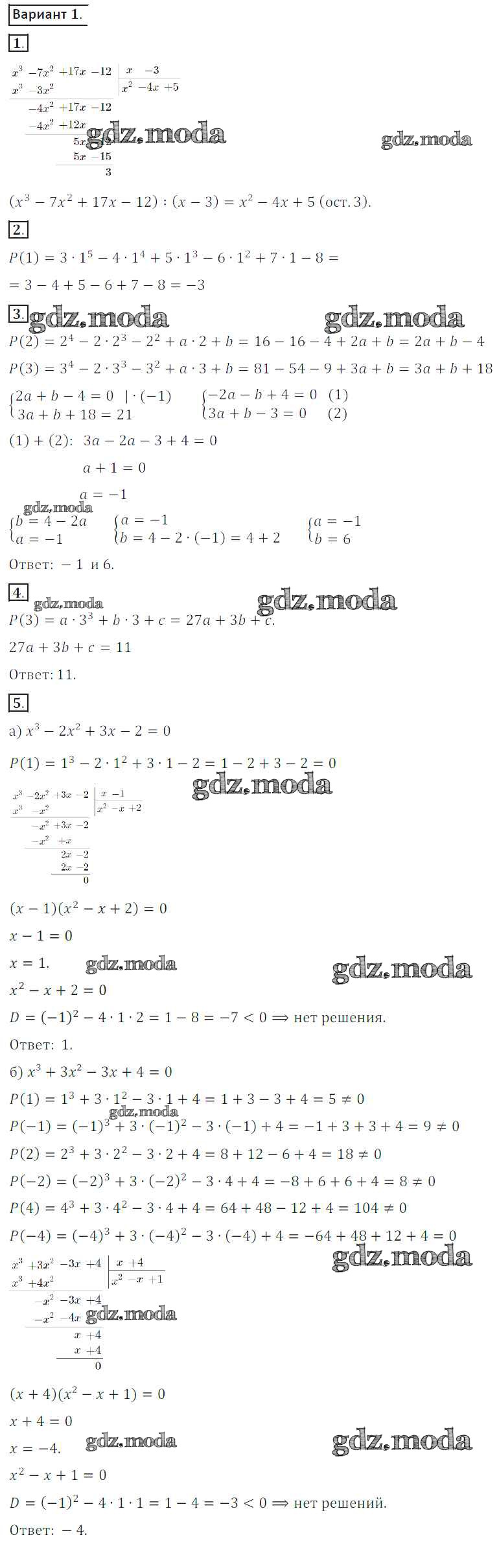 ГДЗ решение к заданию № вариант 1 Алгебра 8 класс Дидактические материалы Потапов М.К. Просвещение 2017 ФГОС бесплатно на гдз.мода!