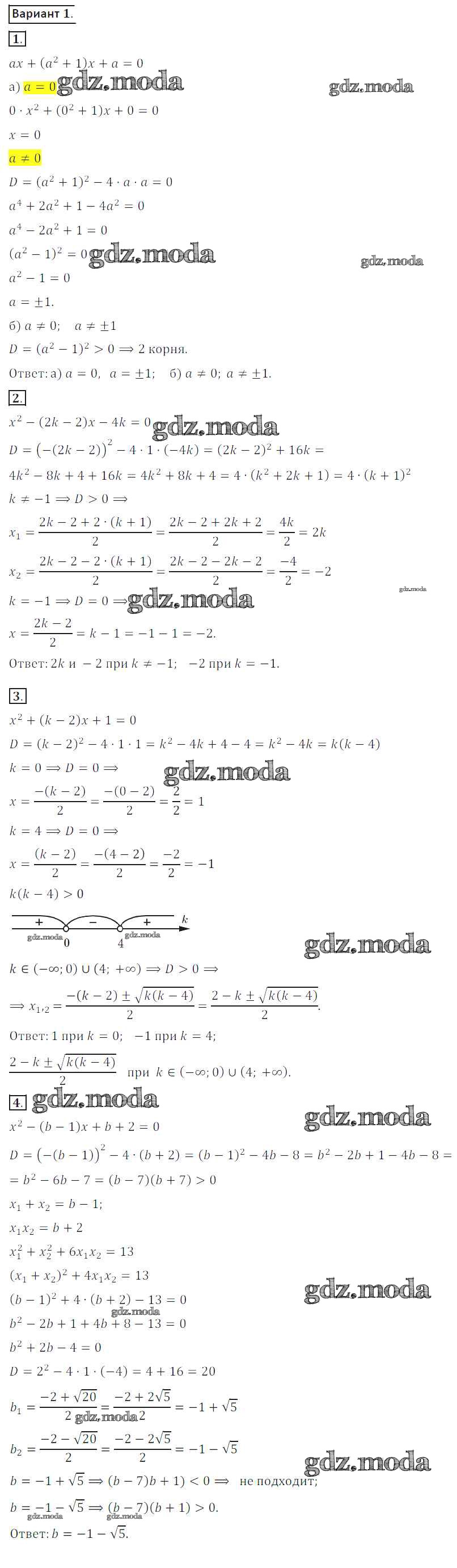 ГДЗ решение к заданию № вариант 1 Алгебра 8 класс Дидактические материалы Потапов М.К. Просвещение 2017 ФГОС бесплатно на гдз.мода!