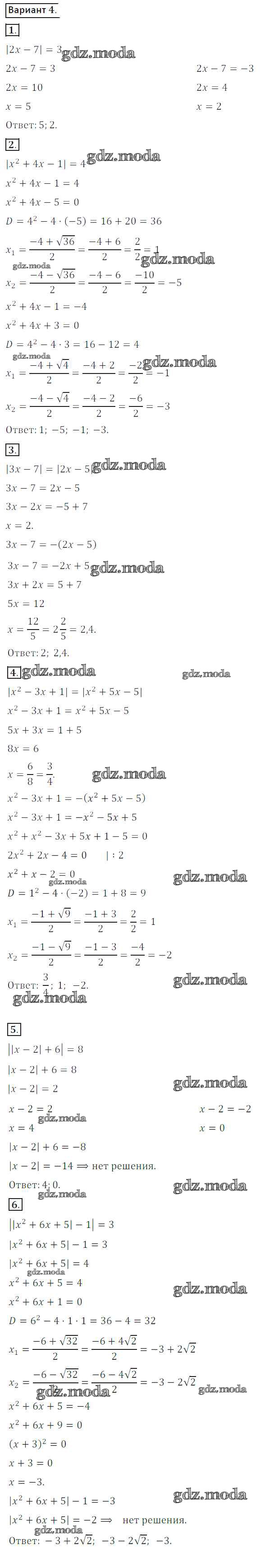 ГДЗ решение к заданию № вариант 4 Алгебра 8 класс Дидактические материалы Потапов М.К. Просвещение 2017 ФГОС бесплатно на гдз.мода!