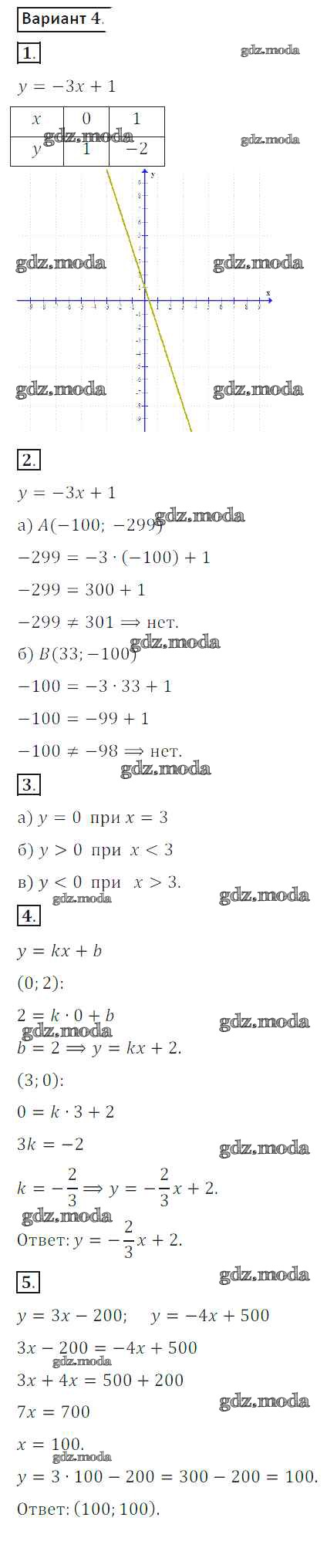 ГДЗ решение к заданию № вариант 4 Алгебра 8 класс Дидактические материалы Потапов М.К. Просвещение 2017 ФГОС бесплатно на гдз.мода!