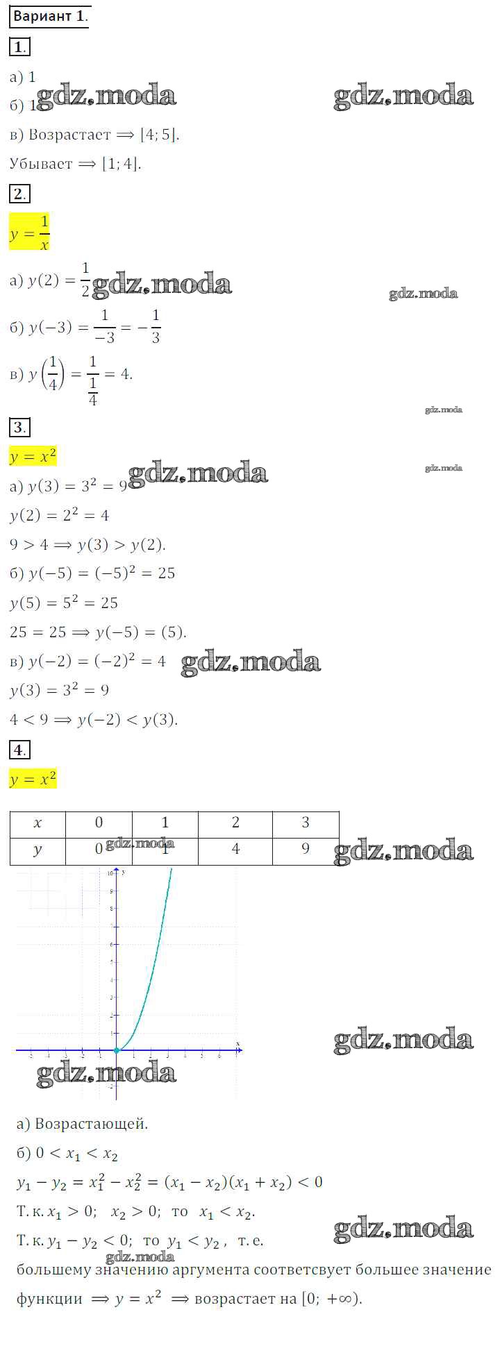 ГДЗ решение к заданию № вариант 1 Алгебра 8 класс Дидактические материалы Потапов М.К. Просвещение 2017 ФГОС бесплатно на гдз.мода!