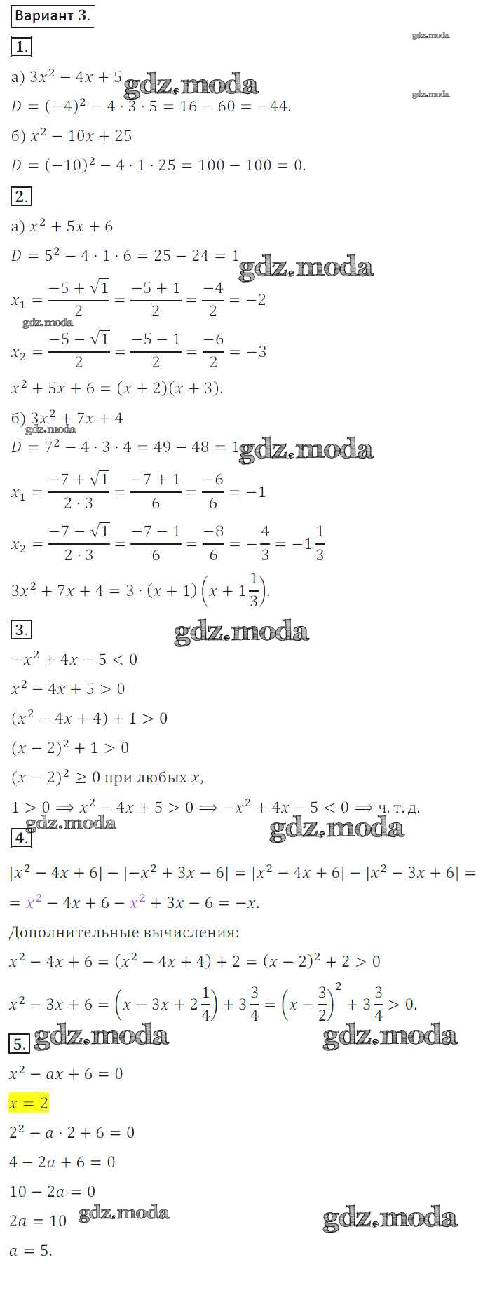ГДЗ решение к заданию № вариант 3 Алгебра 8 класс Дидактические материалы Потапов М.К. Просвещение 2017 ФГОС бесплатно на гдз.мода!