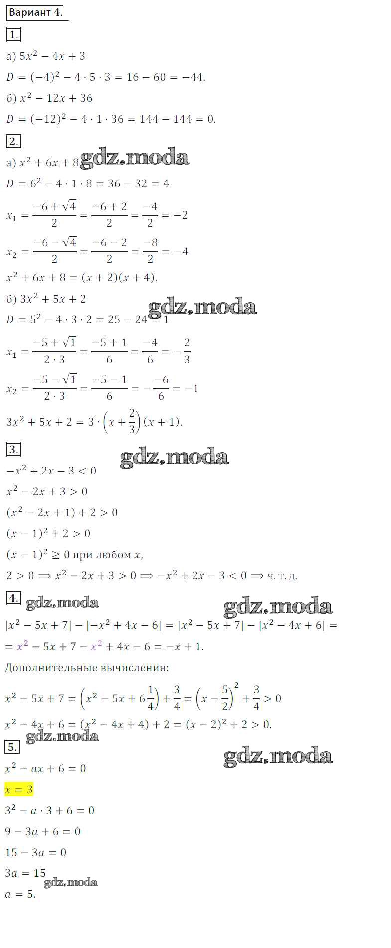 ГДЗ решение к заданию № вариант 4 Алгебра 8 класс Дидактические материалы Потапов М.К. Просвещение 2017 ФГОС бесплатно на гдз.мода!