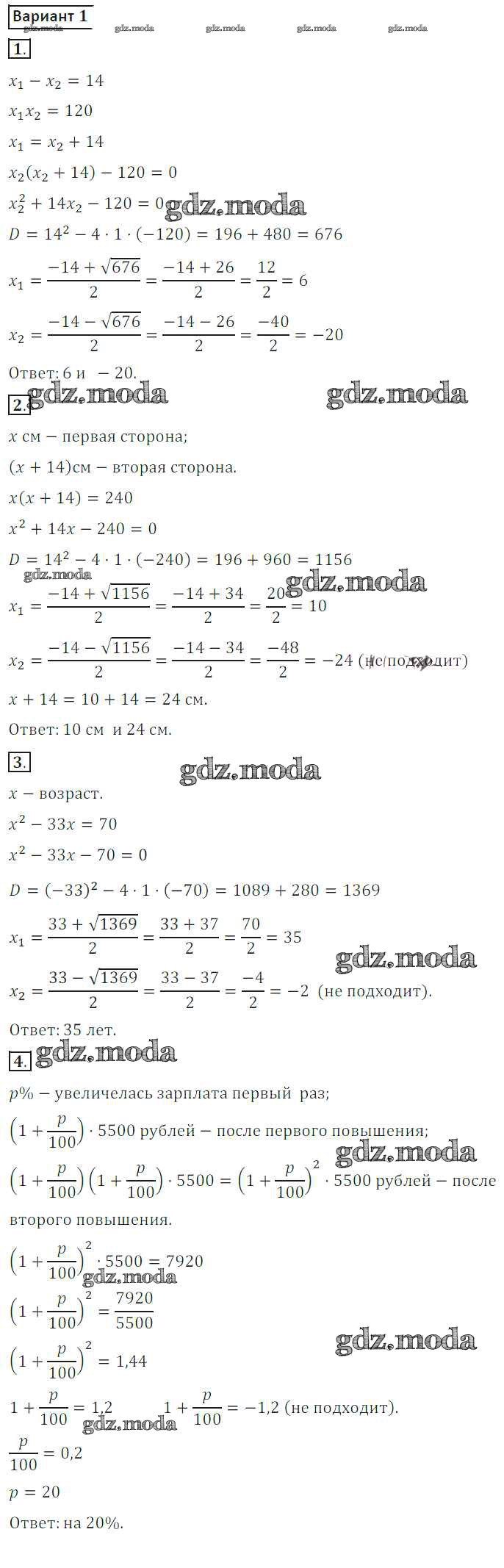 ГДЗ решение к заданию № вариант 1 Алгебра 8 класс Дидактические материалы Потапов М.К. Просвещение 2017 ФГОС бесплатно на гдз.мода!