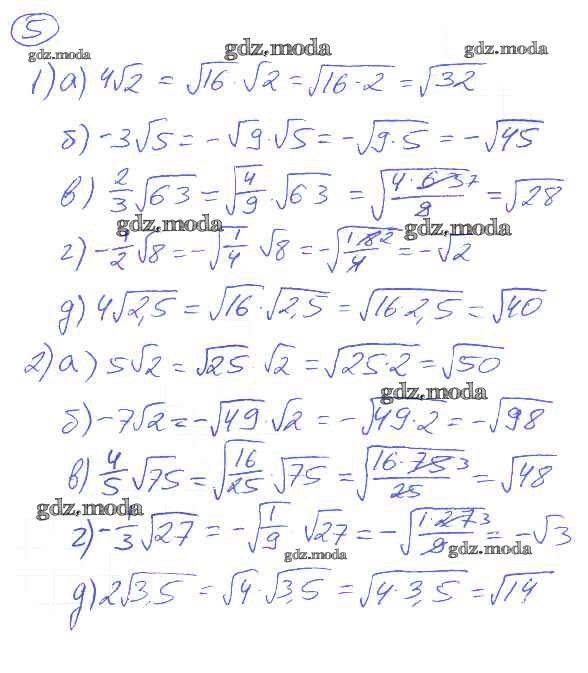 ГДЗ решение к заданию № 5 Алгебра 8 класс Дидактические материалы Евстафьева Л.П. Просвещение 2017 ФГОС бесплатно на гдз.мода!