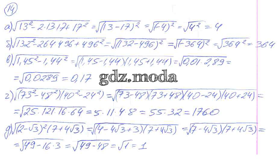 ГДЗ решение к заданию № 14 Алгебра 8 класс Дидактические материалы Евстафьева Л.П. Просвещение 2017 ФГОС бесплатно на гдз.мода!