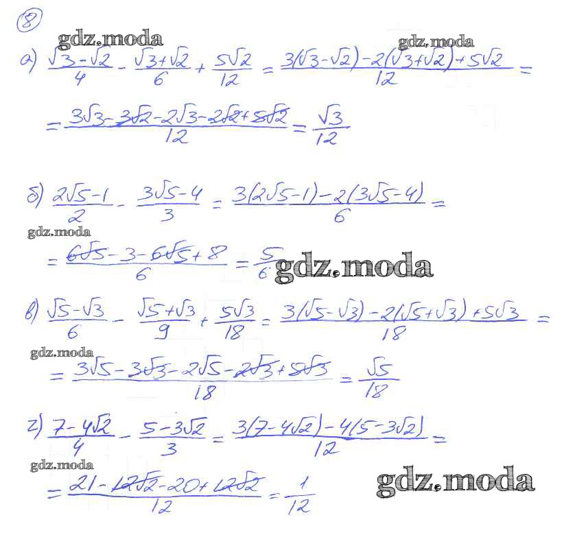 ГДЗ решение к заданию № 8 Алгебра 8 класс Дидактические материалы Евстафьева Л.П. Просвещение 2017 ФГОС бесплатно на гдз.мода!