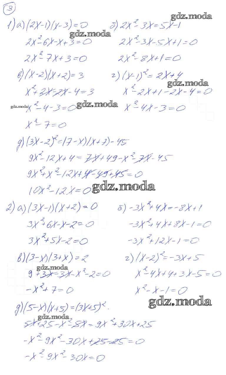 ГДЗ решение к заданию № 3 Алгебра 8 класс Дидактические материалы Евстафьева Л.П. Просвещение 2017 ФГОС бесплатно на гдз.мода!