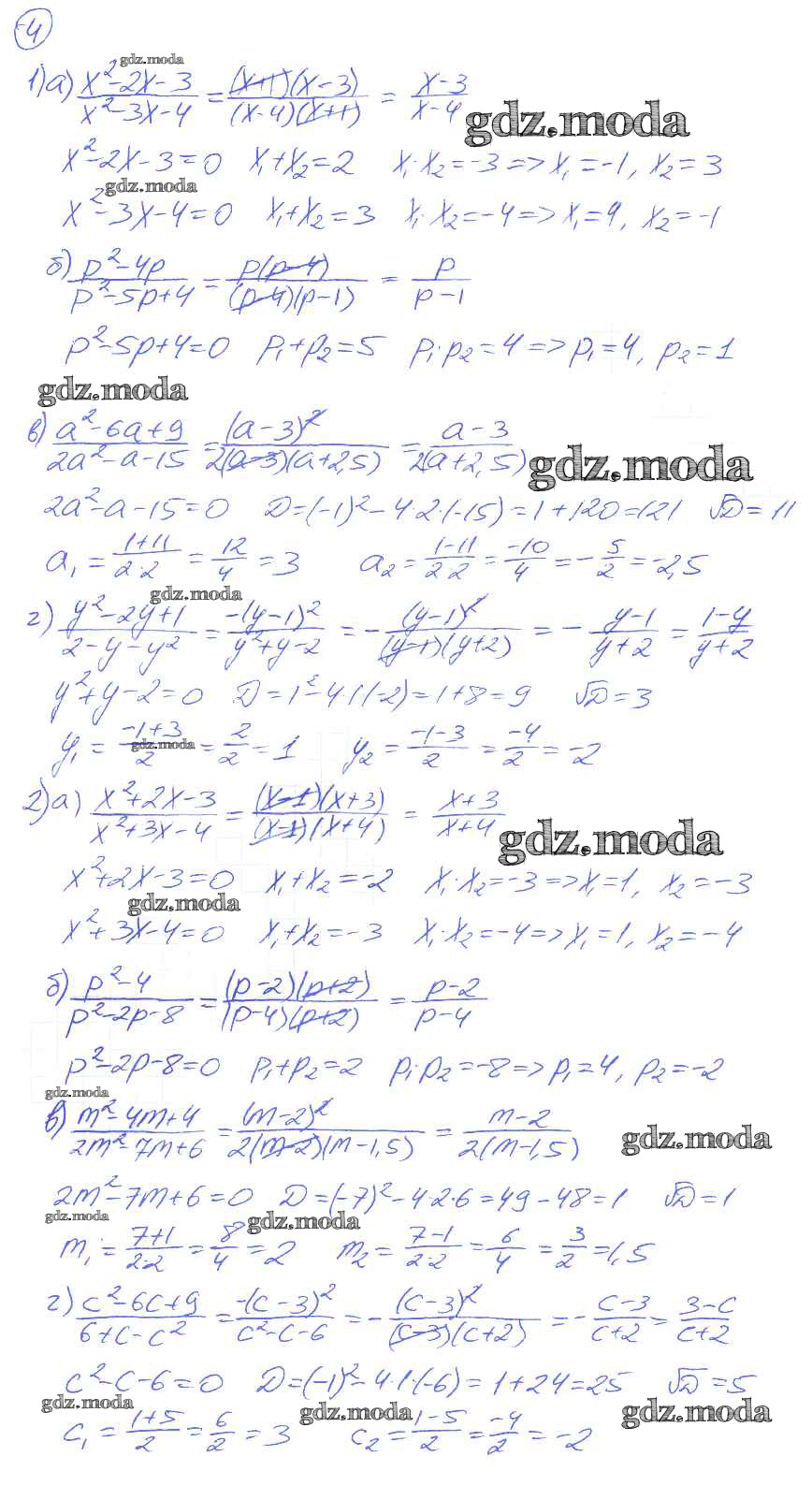 ГДЗ решение к заданию № 4 Алгебра 8 класс Дидактические материалы Евстафьева Л.П. Просвещение 2017 ФГОС бесплатно на гдз.мода!
