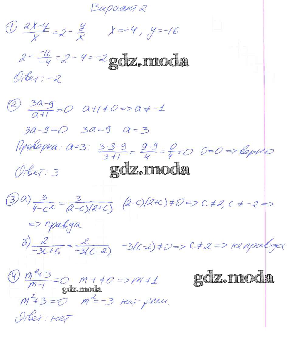 ГДЗ решение к заданию № Вариант 2 Алгебра 8 класс Дидактические материалы Евстафьева Л.П. Просвещение 2017 ФГОС бесплатно на гдз.мода!