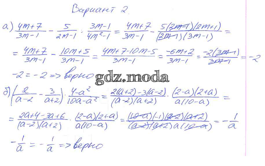 ГДЗ решение к заданию № Вариант 2 Алгебра 8 класс Дидактические материалы Евстафьева Л.П. Просвещение 2017 ФГОС бесплатно на гдз.мода!