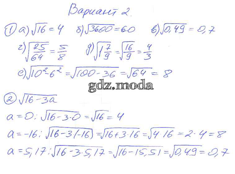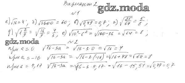 ГДЗ решение к заданию № Вариант 2 Алгебра 8 класс Дидактические материалы Евстафьева Л.П. Просвещение 2017 ФГОС бесплатно на гдз.мода!