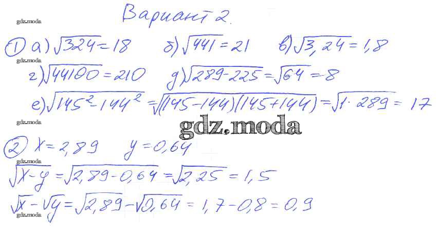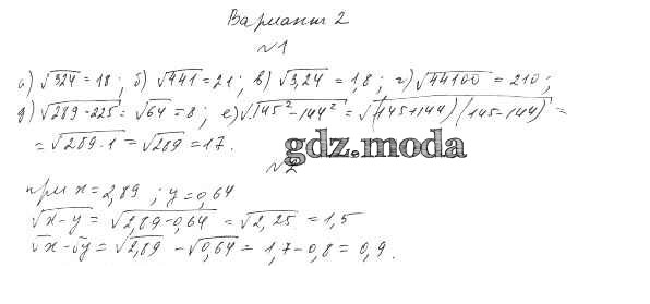 ГДЗ решение к заданию № Вариант 2 Алгебра 8 класс Дидактические материалы Евстафьева Л.П. Просвещение 2017 ФГОС бесплатно на гдз.мода!