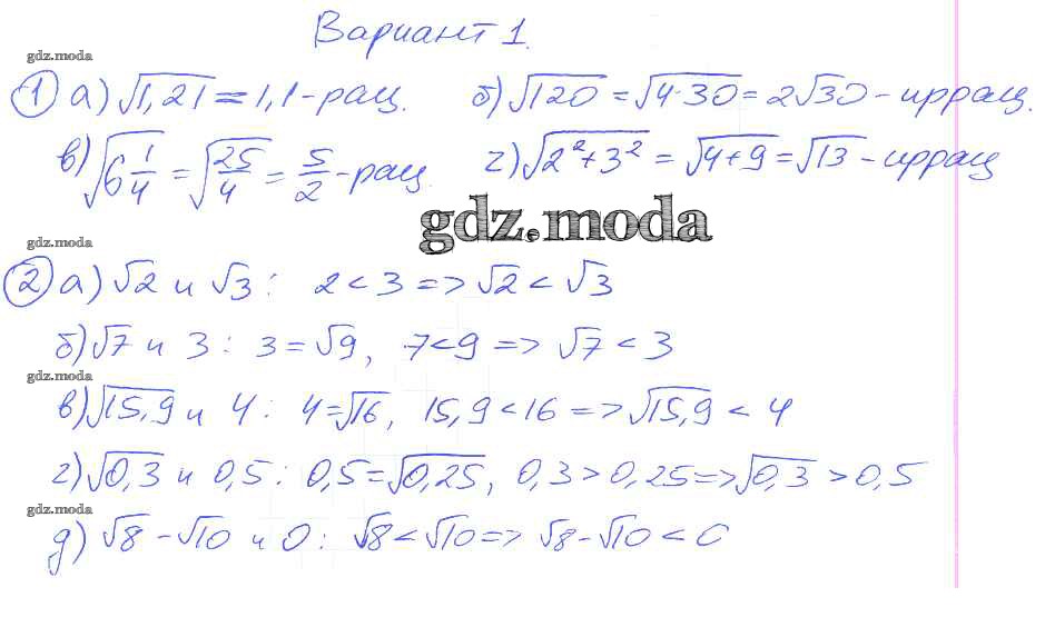 ГДЗ решение к заданию № Вариант 1 Алгебра 8 класс Дидактические материалы Евстафьева Л.П. Просвещение 2017 ФГОС бесплатно на гдз.мода!
