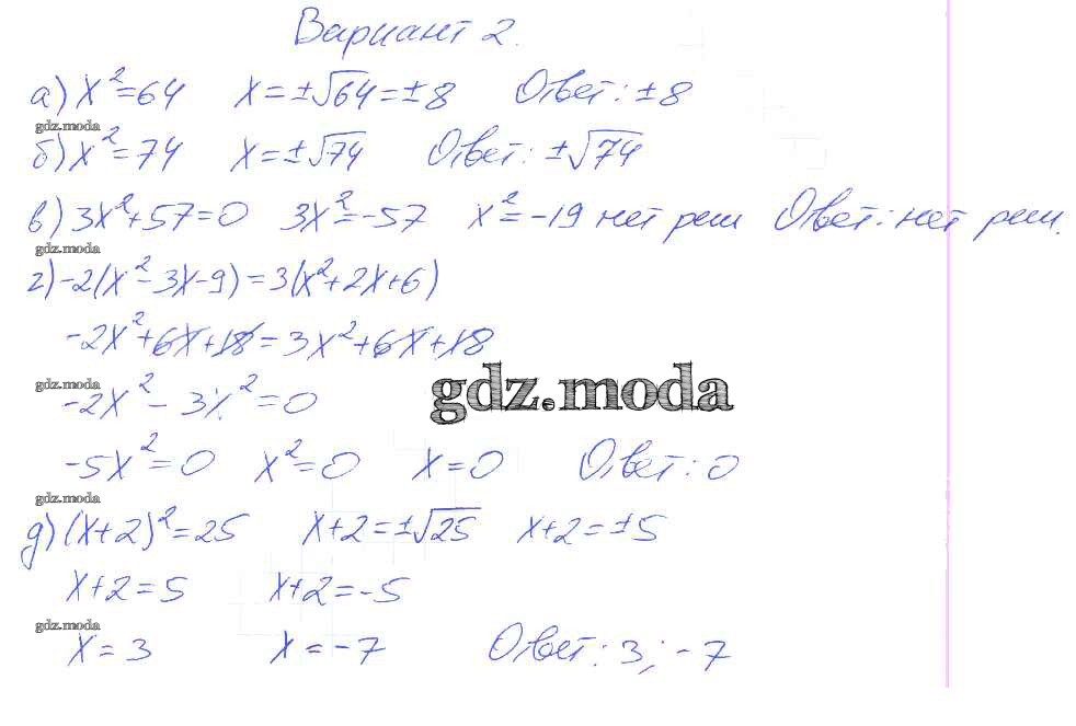 ОТВЕТ на задание № Вариант 2 Дидактические материалы по Алгебре 8 класс Евстафьева