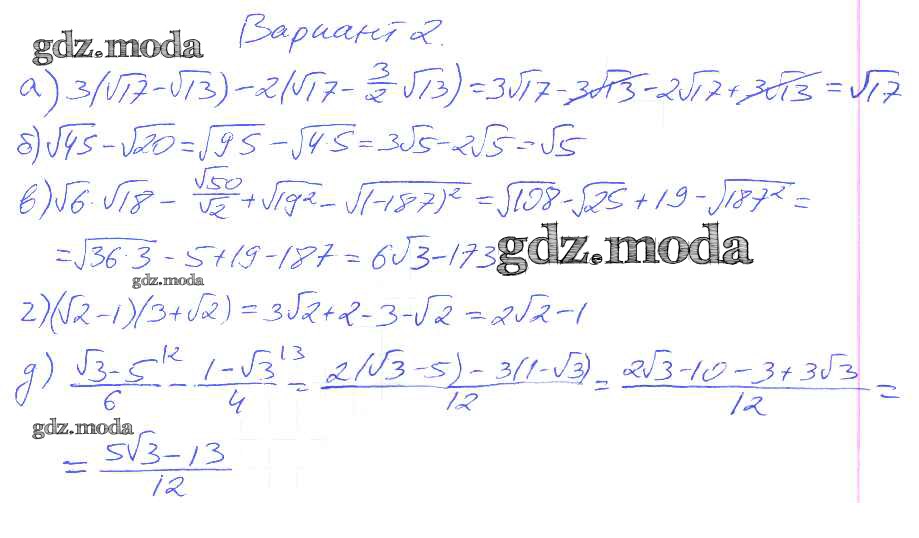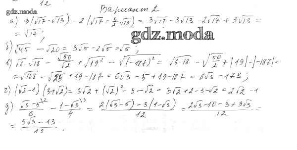 ГДЗ решение к заданию № Вариант 2 Алгебра 8 класс Дидактические материалы Евстафьева Л.П. Просвещение 2017 ФГОС бесплатно на гдз.мода!