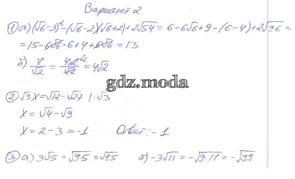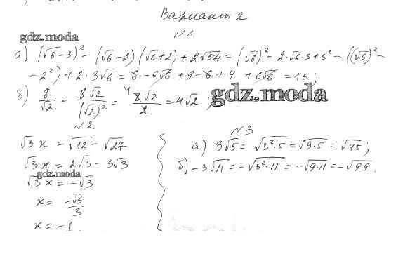 ГДЗ решение к заданию № Вариант 2 Алгебра 8 класс Дидактические материалы Евстафьева Л.П. Просвещение 2017 ФГОС бесплатно на гдз.мода!